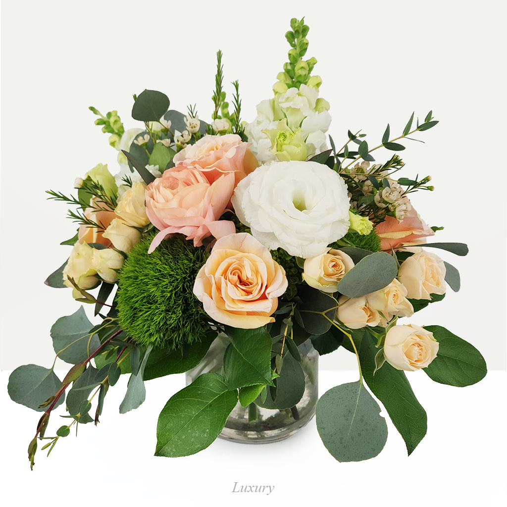 Luxury – Approximately in 15in tall x 13in wide in a 5×5 cylinder vase.
