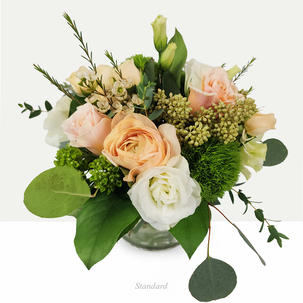 Soft, romantic, and full of spring charm, The Avonridge features lush roses, delicate ranunculus, and clusters of spray roses nestled among fresh seasonal greens. It’s an elegant arrangement that feels both classic and fresh—perfect for brightening a room or sending a thoughtful spring surprise.