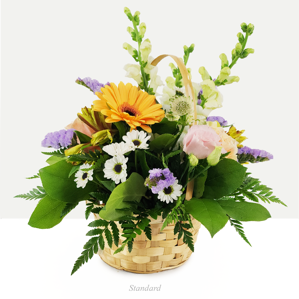 Sizes: Standard & Premium – 7 inch basket, approximately 10 inches in height, Luxury – 7 inch basket, approximately 12 inches in height.